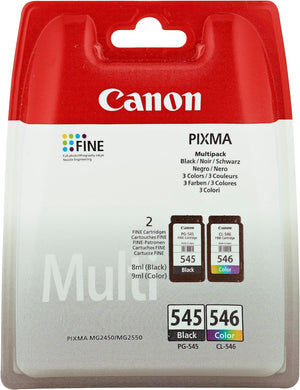 CANON PG-545 / CL-546 Ink Black and Colour Standard Capacity Black 180 SS Colour, Pack of 2 Blister without Alarm