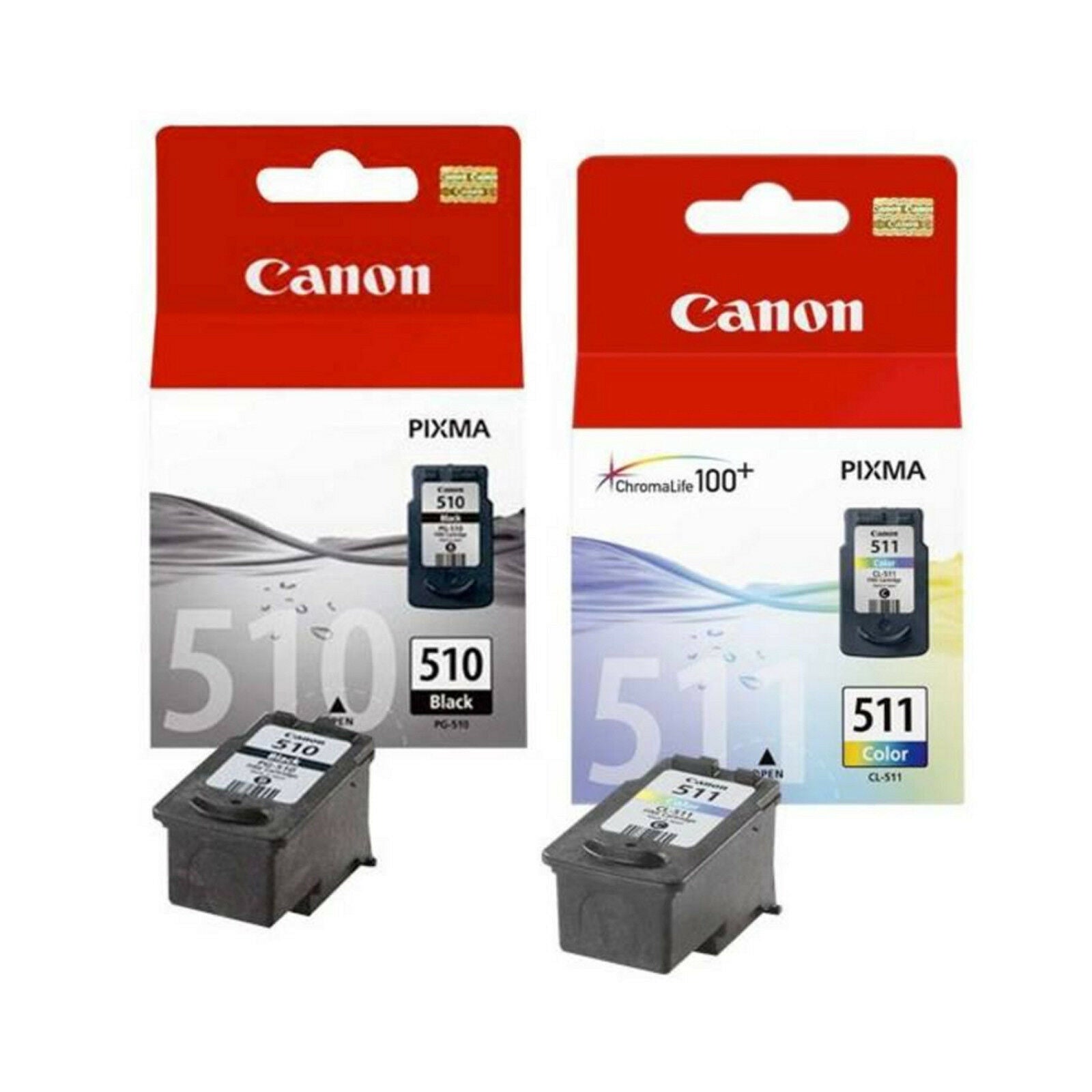 New Original Genuine Canon PG510/CL511 Black and Colour Combo Pack (2970B010) Brand New Boxed Create brilliant text in your documents and vibrant colours throughout you photos and graphics. Combo Pack Contains: 1 x PG-510 Black - 220 Pages 1 X CL-511 Colour - 244 Pages Printer Compatibilty: Canon Pixma: iP2700, iP2702 , MP230, MP240, MP250, MP252, MP260, MP260, MP272, MP280, MP282, MP330, MP480, MP490, MP492, MP495, MX320, MX330, MX340, MX350, MX410, MX420 |